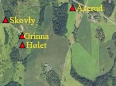 Kartet nedenfor er fra 1780 og viser Hølet (Skrives Hult) og Åserud. Grinna er ikke vist da den ikke fantes i 1780.