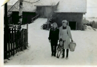 Eli og Sissel skal hente vann i brønnen
