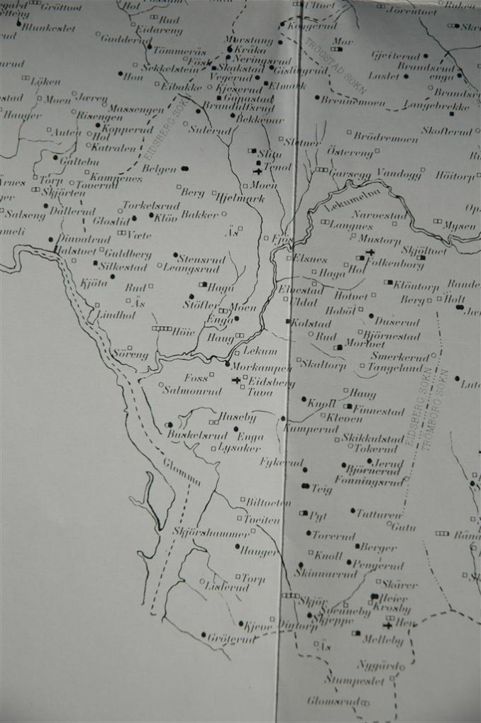 Dette er et gammelt kart som viser Silkestad og Kjøta. I tillegg er det 2 plasser som var ukjente for meg. Den ene ligger på Askim Siden og kalles Dinvalrud. Det kan være det som idag kalles Fosser, selv om Fosser betegnes som en husmannsplass under Dallerud. Den andre er Støfler ute ved Brendop/Haga. Halstvet er tegnet som en gård,ikke noe på Askim siden, mens Høie er markert som flere.