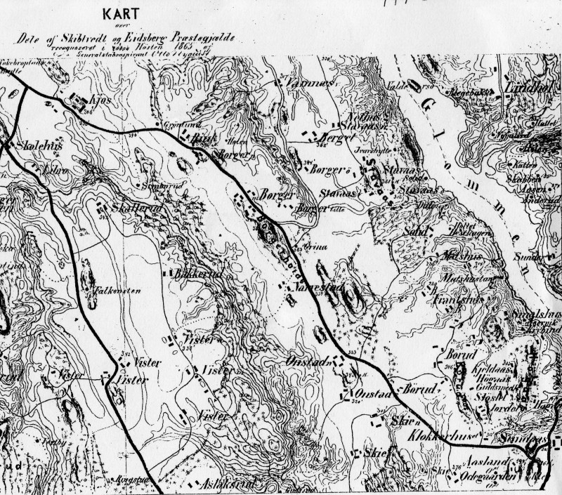 Det som er interessent her er at veien forbi Nordeng og Lindhol ned til Glomma er inntegnet. Det er grunn til å tro at denne var mye benyttet ved ferdsel på Glomma og videre opp forbi Torkelsrud og så til Askim. Torkelsrud var en skyss stasjon i gamle dager før veien gikk videre.