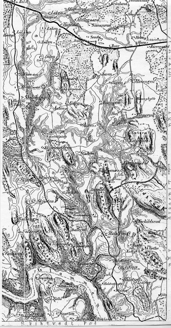 Dette kartet dokumenterer de husmannsplassene som var på Halstvet. De var relativt ukjente før. Vi ser også gården Norby med en egen husmannsplass like ved.