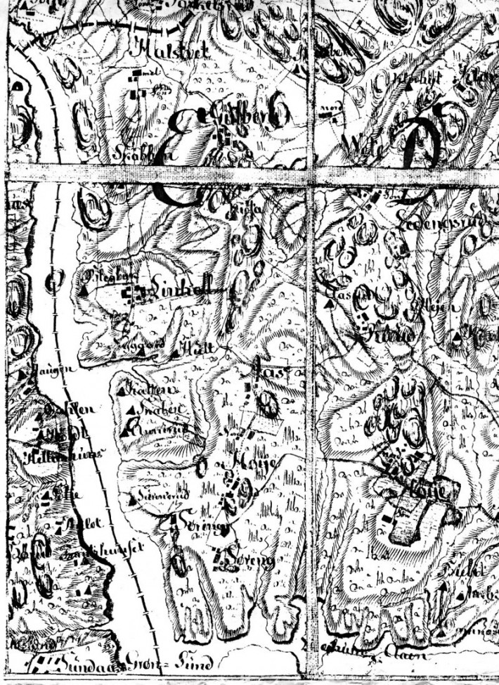 Dette er et gammelt militærkart fra 1780. Det kan se ut som Skabben består av 2 husmannsplasser.