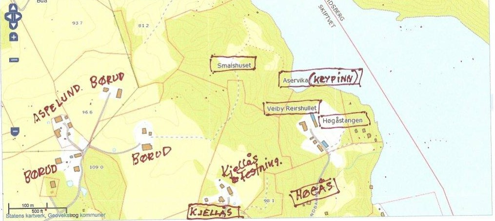 Diverse steder på Skiptvet siden lenger ned ser man på kartene nedenfor: