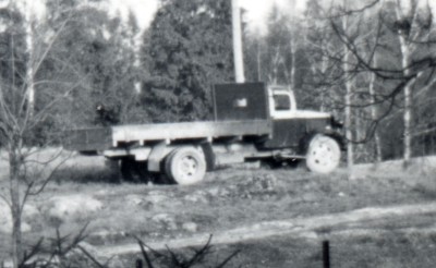 Etter krigen begynte det så smått å komme noen biler. Nedenfor sees en lastebil på Nedre Guldberg. Bildet er tatt i 1946.