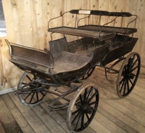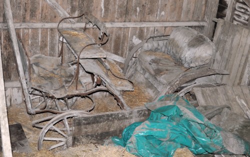 Denne vogna viser standsmessig skyss i gamle dager. Dessverre stuet alt for langt bort idag, men slike fantes nok på de fleste gårdene her omkring i tidligere tider. Denne ble brukt til kirke og besøk. Med fem seks personer var det tungt lass for hesten. Vogna i seg selv var også tung. På de større gårdene ble det ofte kjørt tospann, kalt å kjøre beite i vanlig onne arbeid.