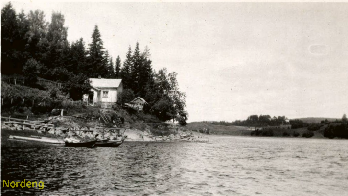 Hytte ved Franzehuslandet. Nygaard skimtes på Lindhol siden.