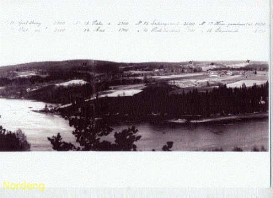 Gammelt bilde som må være tatt fra Kjellås Festning ca. 1903. Vi ser Sunnerud nede ved elva